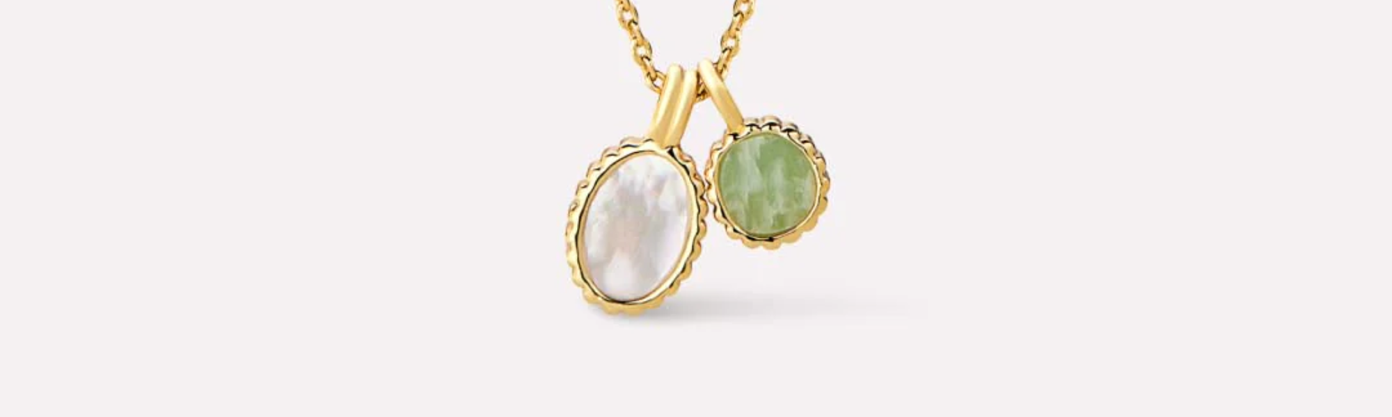 Add something chic to your stack with this dainty charm necklace. With in 14k gold-plated chain, this delicate necklace features a stunning mother of pearl pendant and beautiful blue amazonite stone for a fun pop of color.