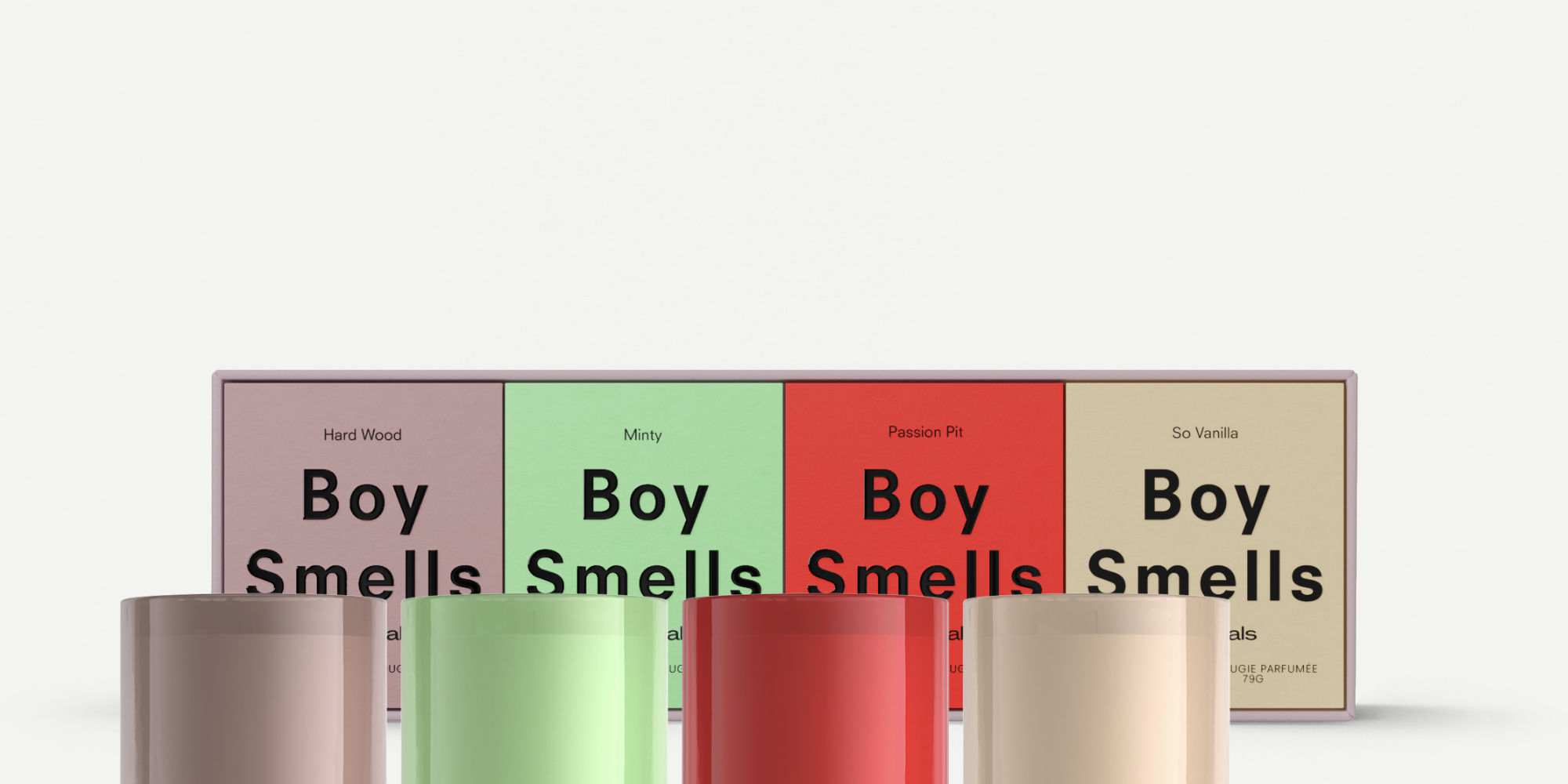 This candle quad brings together four Boy Smells icons, each with its own moods—all meant to mix, match and burn on repeat. They’re giving total sensory pleasure with candy-colored vessels you’ll want to keep long after the wax is gone. Includes: Passion Pit, Hard Wood, So Vanilla, and Minty.
