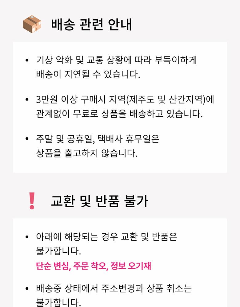 • 配送は、支払い及び配送情報の入力完了日から営業日基準で平均3-5日以内に完了されます。(週末、祝日除く)注文量が多い場合、時間がもう少し掛かる場合があります。