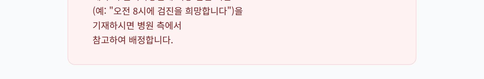 予約時にお問い合わせ欄へ希望時間(例:「午前8時に検診を希望します」)をご記入いただくと、