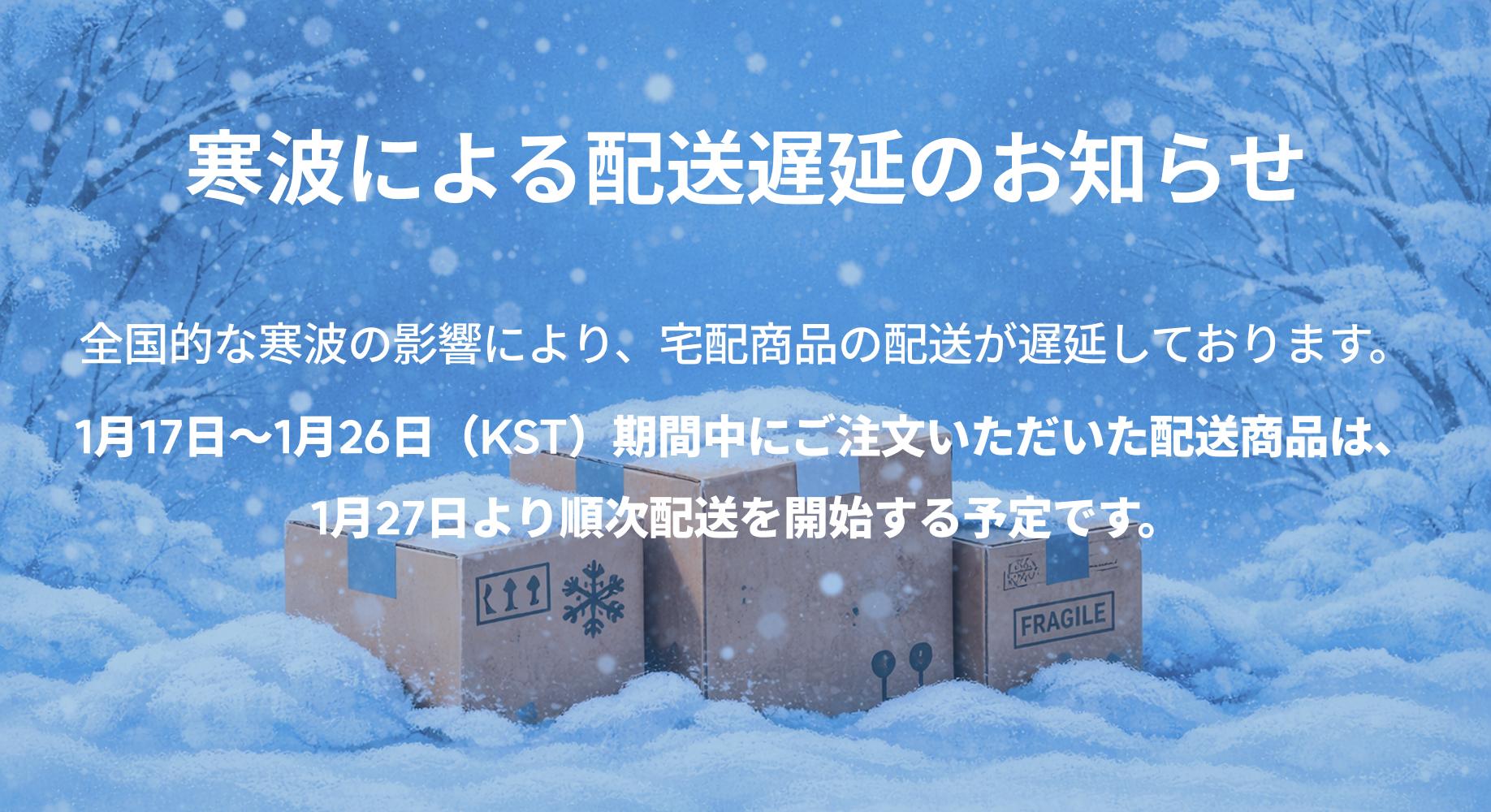 - • 配送は、支払い及び配送情報の入力完了日から営業日基準で平均3-5日以内に完了されます。(週末、祝日除く)注文量が多い場合、時間がもう少し掛かる場合があります。