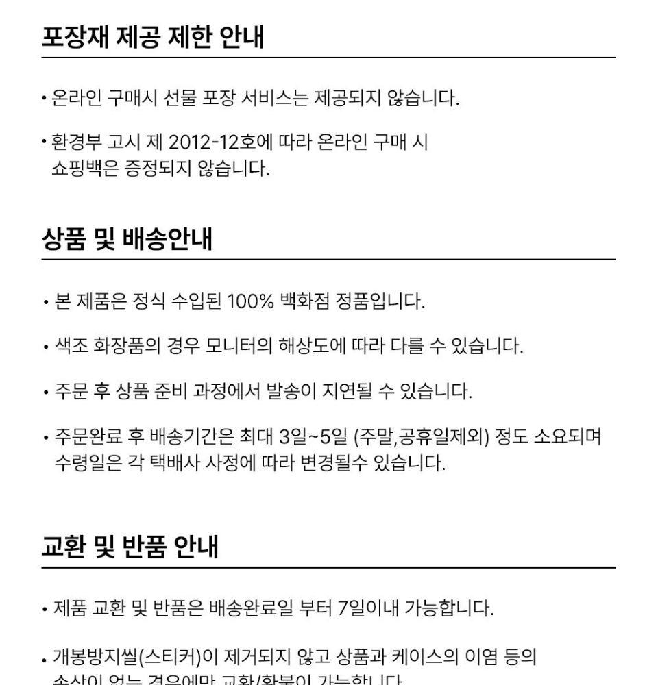 • 配送は、支払い及び配送情報の入力完了日から営業日基準で平均3-5日以内に完了されます。(週末、祝日除く)注文量が多い場合、時間がもう少し掛かる場合があります。