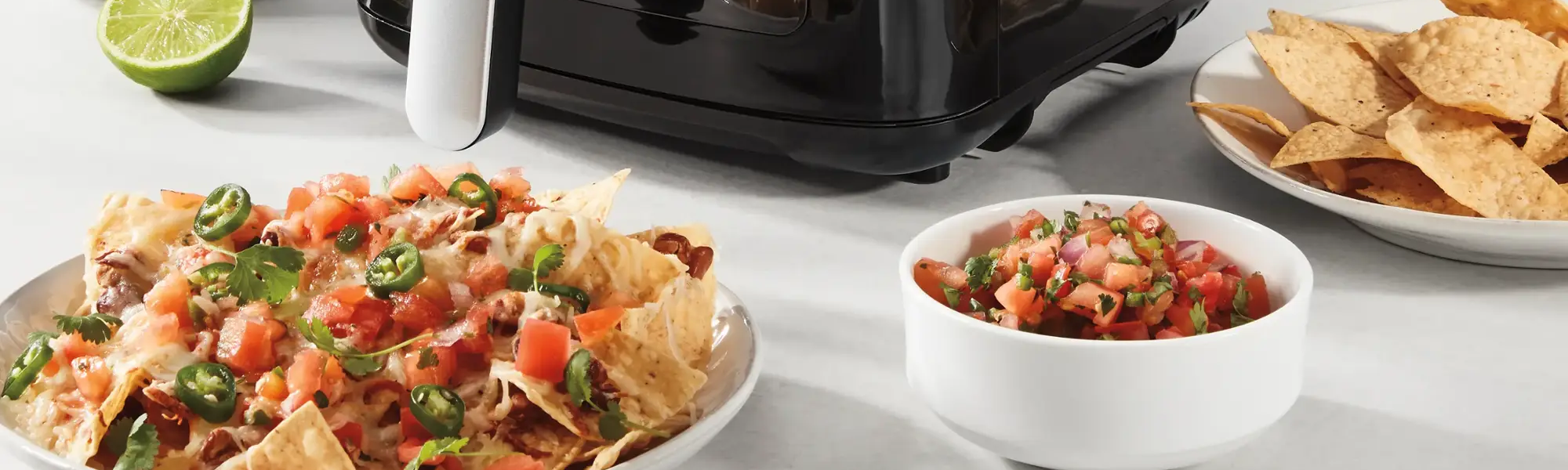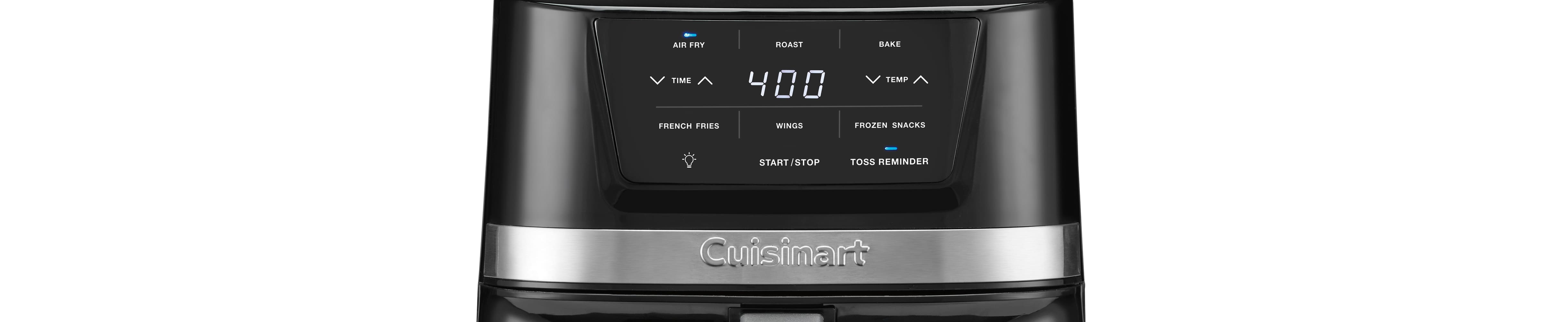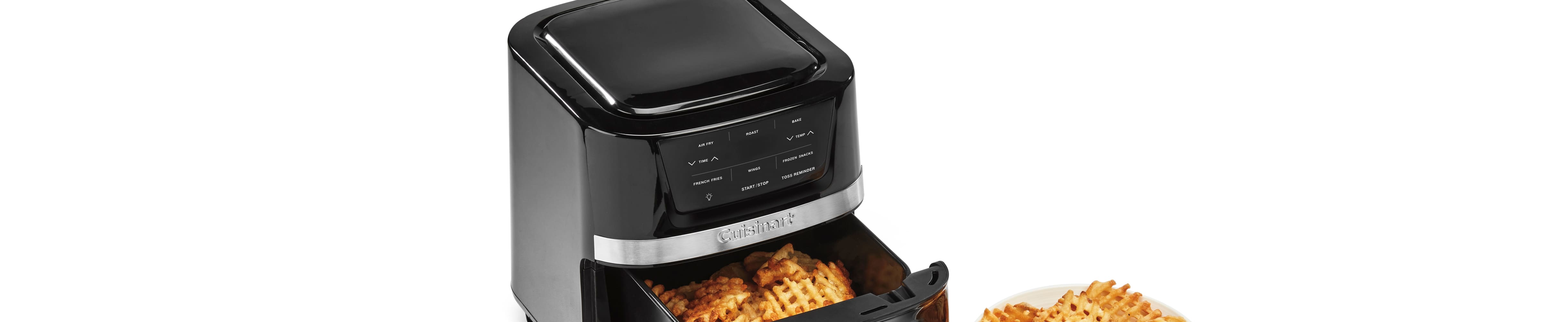 この2.6クォートのエアフライヤーは、多用途でコンパクトな調理家電で、1~2人分の食事の調理や、おいしい付け合わせやスナック作りに最適です。エア・アドバンテージ技術により、エアフライ、ベイク、ブロイル機能に加えて3つのエアフライのプリセットで、カリッとした仕上がりを実現します。ライト付きの覗き窓、振り混ぜリマインダー、自動保温により、これまでになく便利にエアフライできます。さらに、省スペース設計により、カウンタートップのスペースを有効活用でき、収納も簡単です。