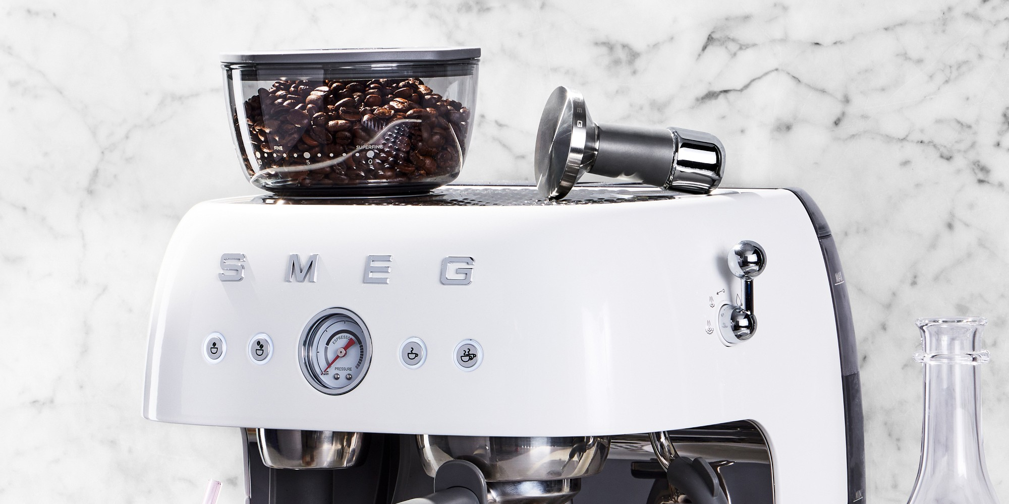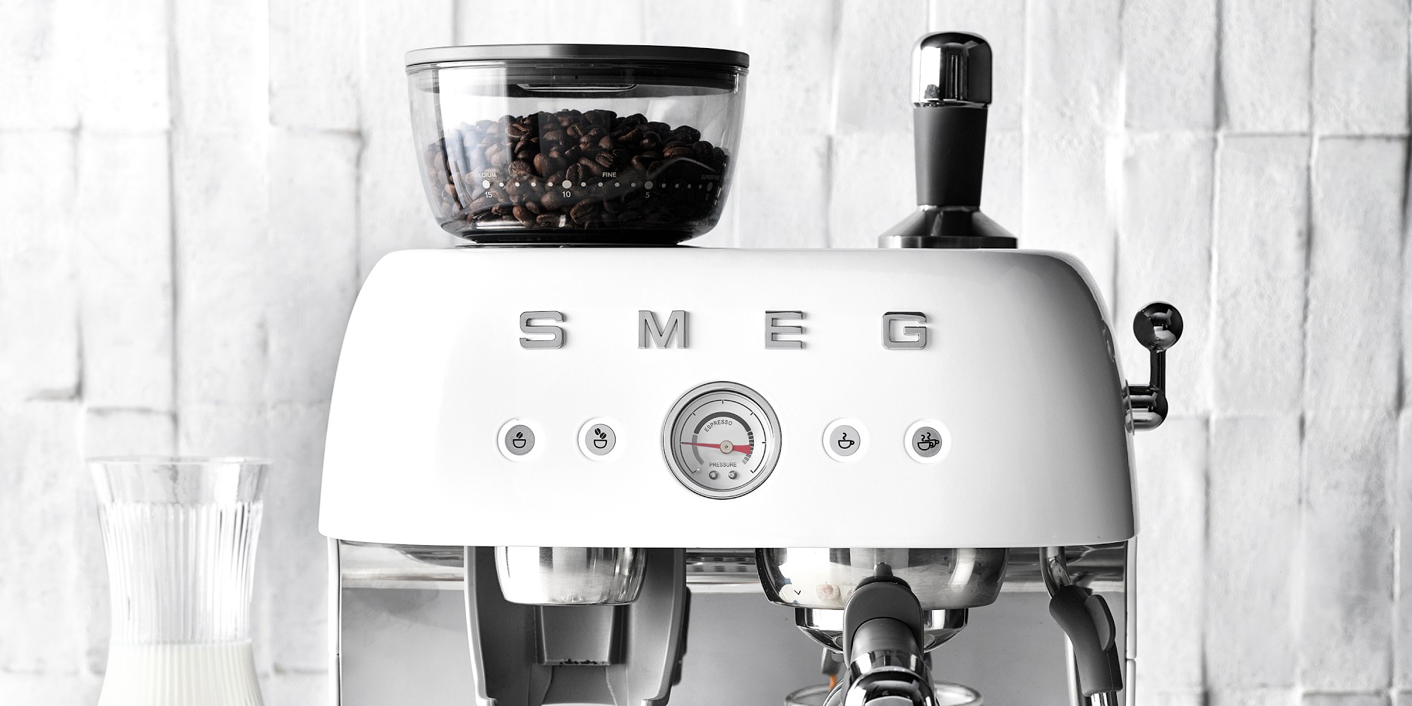 ミッドセンチュリーの美学と現代的な利便性を融合させたこの洗練されたマシンは、象徴的なイタリアンスタイルで本格的なエスプレッソを抽出します。ステンレススチール製のコニカルグラインダーとデュアルスパウトを備え、1杯または2杯のコーヒーを同時に挽いて淹れることができます。さらに、なめらかでクリーミーなカプチーノを作るためのインスタントスチームワンドも装備されています。