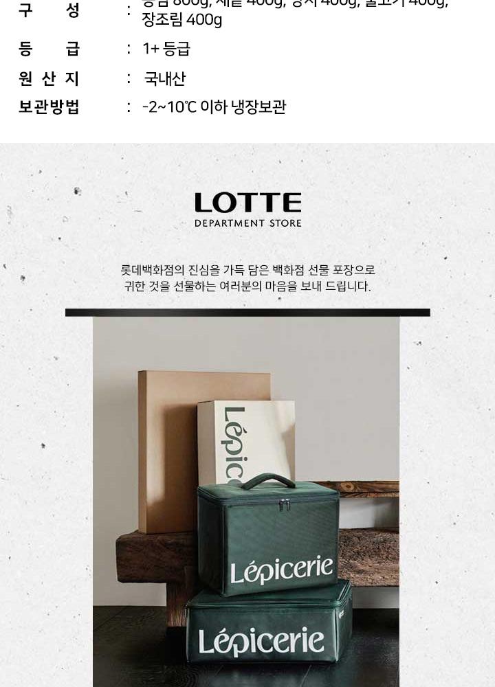 LEPICERIE 횡성한우 1+등급 명품 2호세트(등심0.8kg+채끝0.4kg+양지0.4kg+불고기0.4kg+장조림0.4kg)2.4kg/냉장